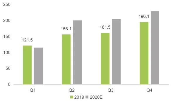 受新型冠狀病毒疫情影響,多地出臺了交通管制和人員限行的措施,短期對快遞業(yè)務(wù)發(fā)展有較大影響,主要體現(xiàn)在一季度數(shù)據(jù)。假定疫情在2月底得到有效控制的情況下,預(yù)計一季度快遞業(yè)務(wù)量120億件左右,總體與上年基本持平。經(jīng)歷3月恢復(fù)調(diào)整后,市場需求將加速釋放,二季度快遞業(yè)迎來速度提升期,增速將明顯加快,預(yù)計該季度業(yè)務(wù)量規(guī)模為200億件左右,增速將重回30%以上。下半年將恢復(fù)常態(tài)運(yùn)行,預(yù)計三季度和四季度快遞業(yè)務(wù)量規(guī)模分別為200億件和230億件左右,全年快遞業(yè)務(wù)量規(guī)模將超過750億件。快遞價格觸底反彈,預(yù)計全年業(yè)務(wù)收入增速將首次超過業(yè)務(wù)量增速。