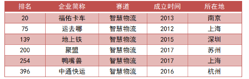 另外,排名前100的企業(yè)有第20位的福佑卡車和第75位的運(yùn)去哪。福佑卡車作為技術(shù)驅(qū)動型公路貨運(yùn)平臺,近日已赴美遞交IPO申請,計(jì)劃在納斯達(dá)克上市。而一站式國際物流在線服務(wù)平臺于前日宣布獲得中信資本領(lǐng)投,襄禾資本和老股東跟投的新一輪融資,D1輪累計(jì)融資額達(dá)1.5億美元,總?cè)谫Y金額超過了3億美元。