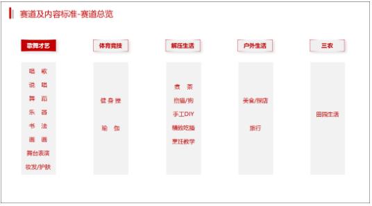 根據(jù)京東推出的主播招募政策,面向歌舞才藝、體育競(jìng)技、解壓生活、戶外生活、三農(nóng)五個(gè)大賽道下的17個(gè)細(xì)分賽道招募內(nèi)容型主播。從政策細(xì)則來(lái)看,京東對(duì)每個(gè)細(xì)分賽道都做了具體的“內(nèi)容標(biāo)準(zhǔn)”要求,包括直播場(chǎng)景、音畫質(zhì)量、主播狀態(tài)、直播內(nèi)容等等。