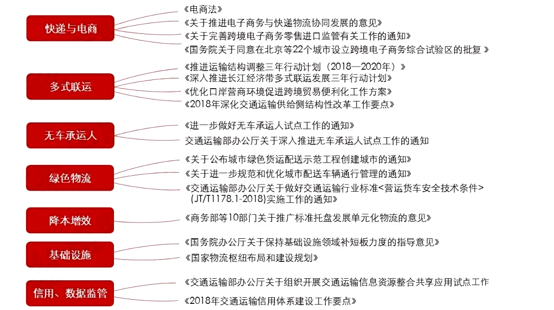 現(xiàn)在,國家關(guān)于物流的支撐政策不勝枚舉,以下梳理了2018年來關(guān)于促進(jìn)物流行業(yè)發(fā)展的國家政策。這些政策、指導(dǎo)意見從不同的角度,為物流業(yè)未來的發(fā)展指明了方向。對(duì)于物流企業(yè)來說,準(zhǔn)確地把握風(fēng)向,順應(yīng)大環(huán)境,才能找準(zhǔn)發(fā)力點(diǎn)。